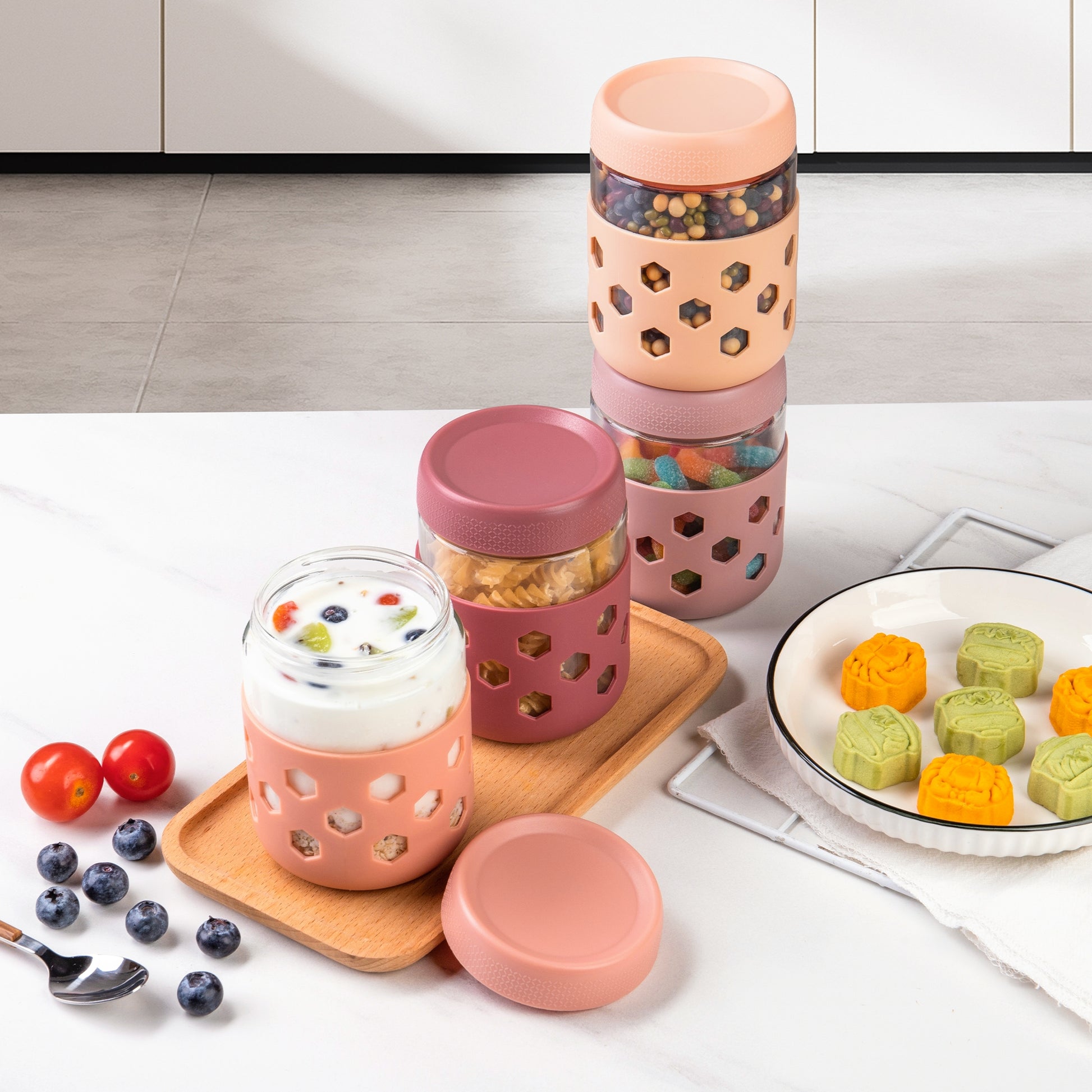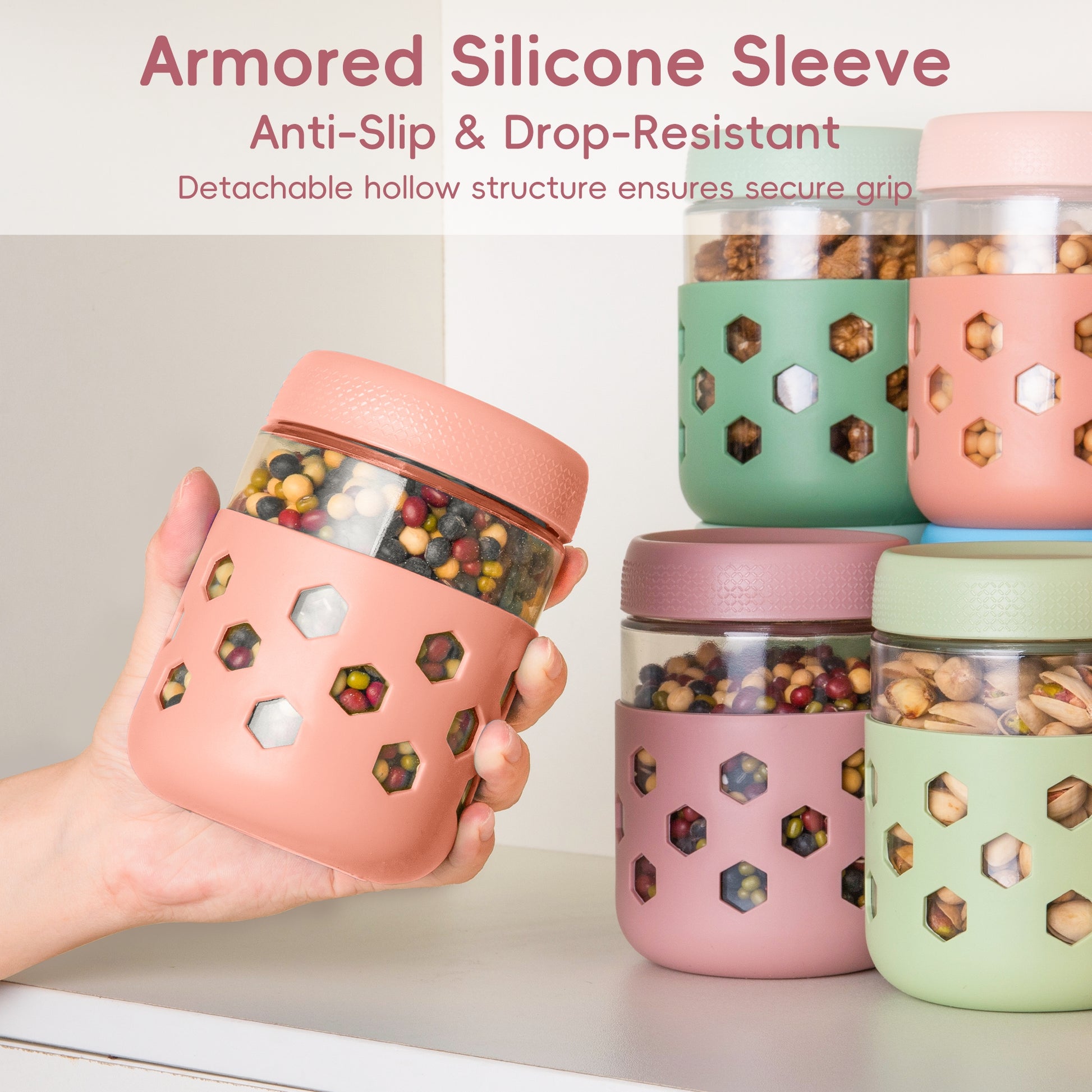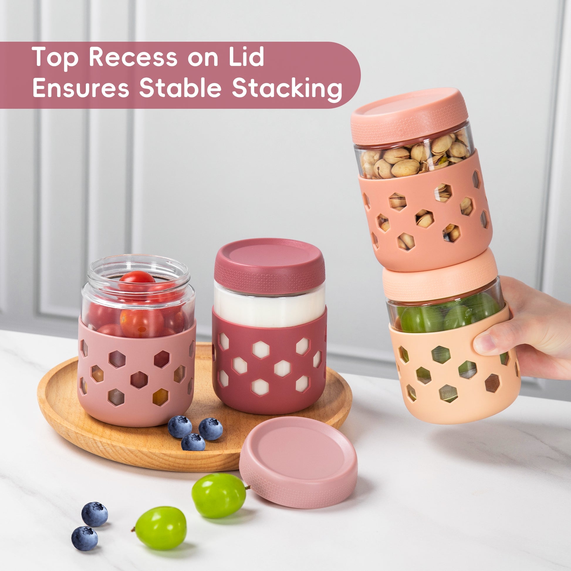 Silicone-Armored Overnight Oats Jars: Extra-thick silicone sleeve absorbs drop shock, and grip holes conquer wet hands. Available in a range of colors for personalization and to turn meal prep into happy rituals.