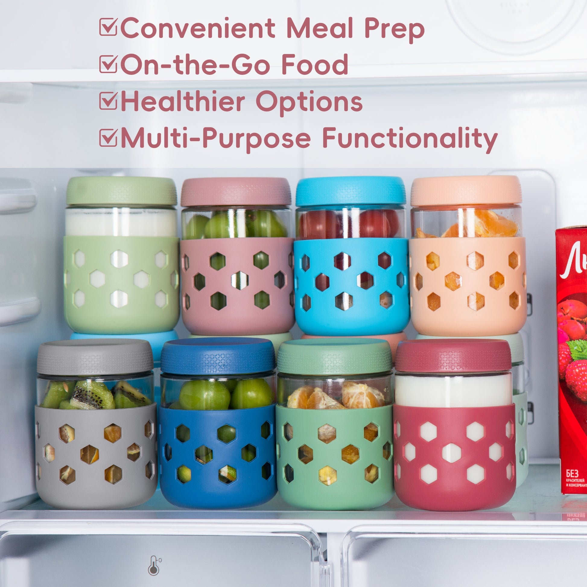 Meal Prep, Meet Style: Colorful silicone sleeves jazz up your 4-pack oatmeal jars while guarding against chips and cracks. Plus, all components are dishwasher-safe, making cleanup a breeze.