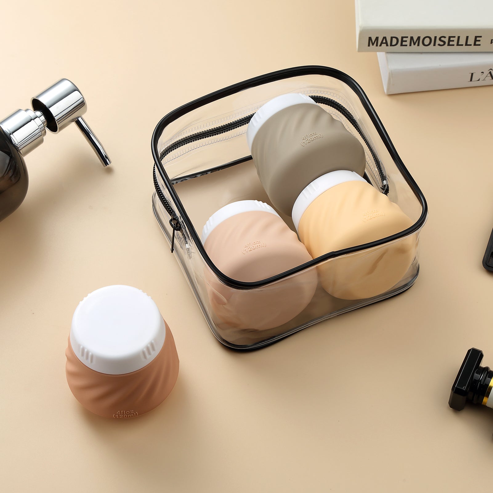 Travel Accessories: The travel containers are a pack of 4pcs cosmetic container made of BPA-free silicone.