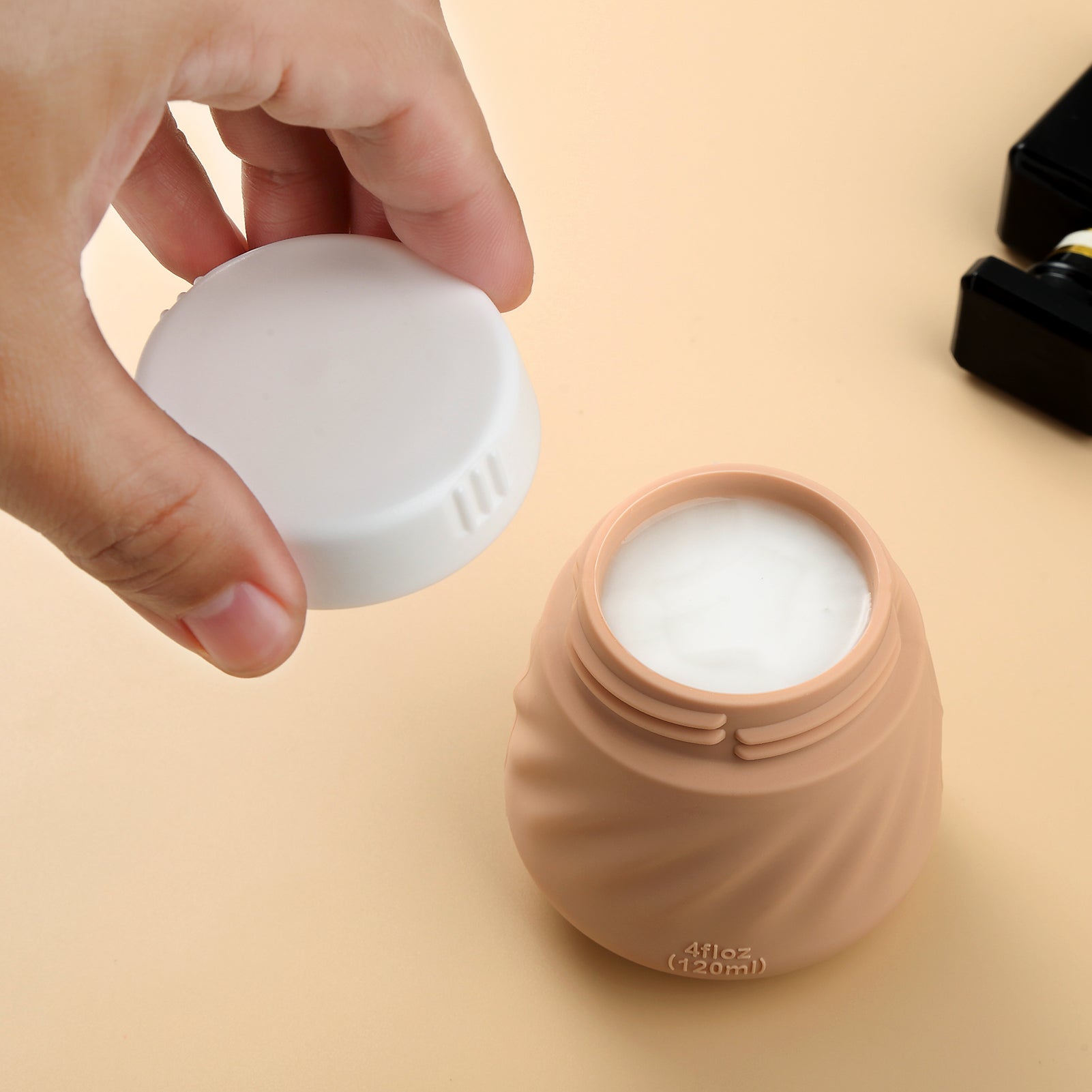 Mrsdry Travel Containers for Toiletries, Silicone Cream Jars TSA Approved Travel Size Containers with Clear Bag, Leak-proof Travel Accessories with Lid for Cosmetic Face Body Hand Cream (4 Pack)
