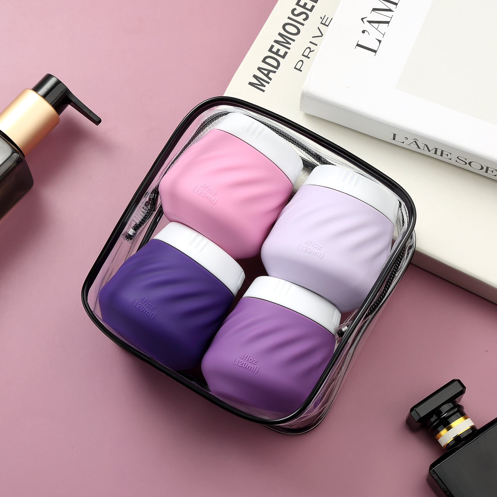 Mrsdry Travel Containers for Toiletries, Silicone Cream Jars TSA Approved Travel Size Containers with Clear Bag, Leak-proof Travel Accessories with Lid for Cosmetic Face Body Hand Cream (4 Pack)