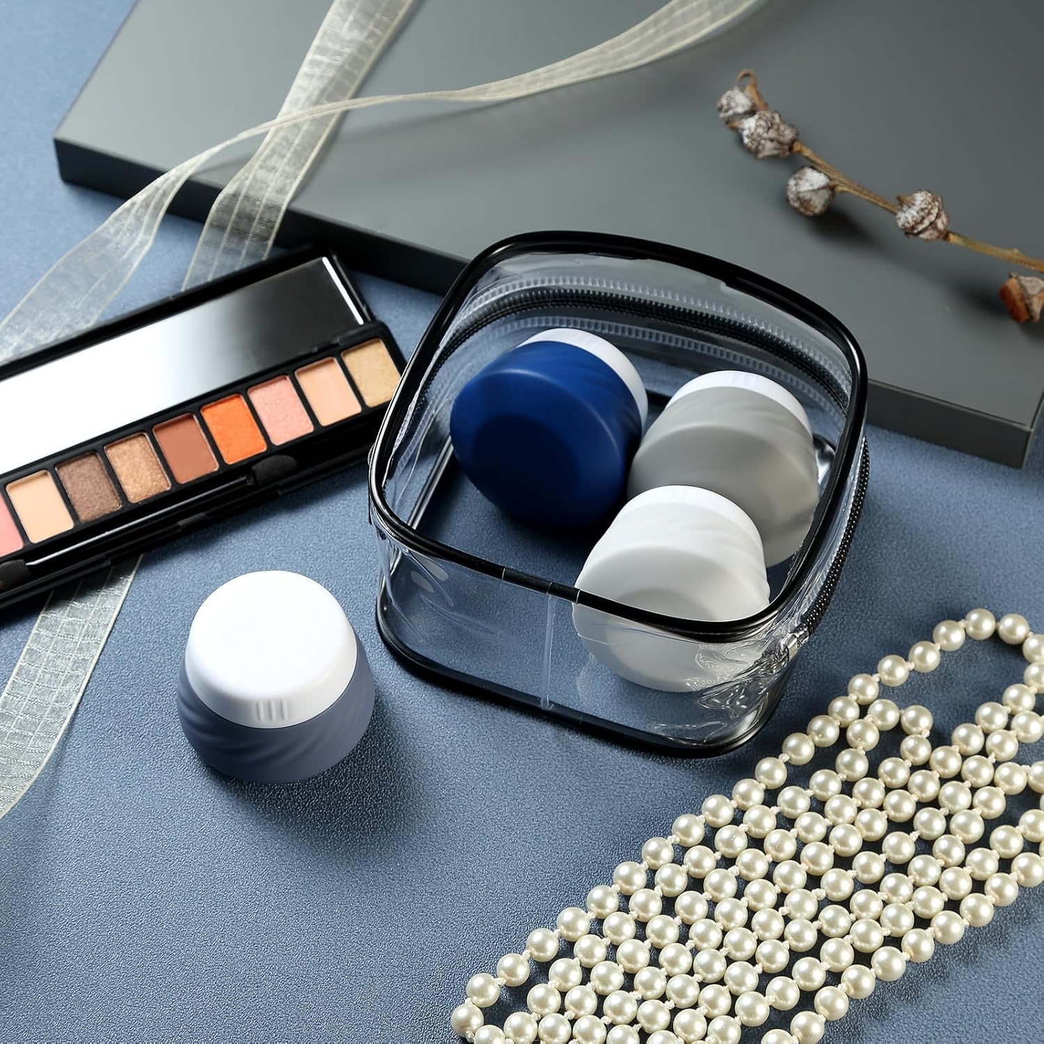 Mrsdry Travel Containers for Toiletries, Silicone Cream Jars TSA Approved Travel Size Containers with Clear Bag, Leak-proof Travel Accessories with Lid for Cosmetic Face Body Hand Cream (4 Pack)