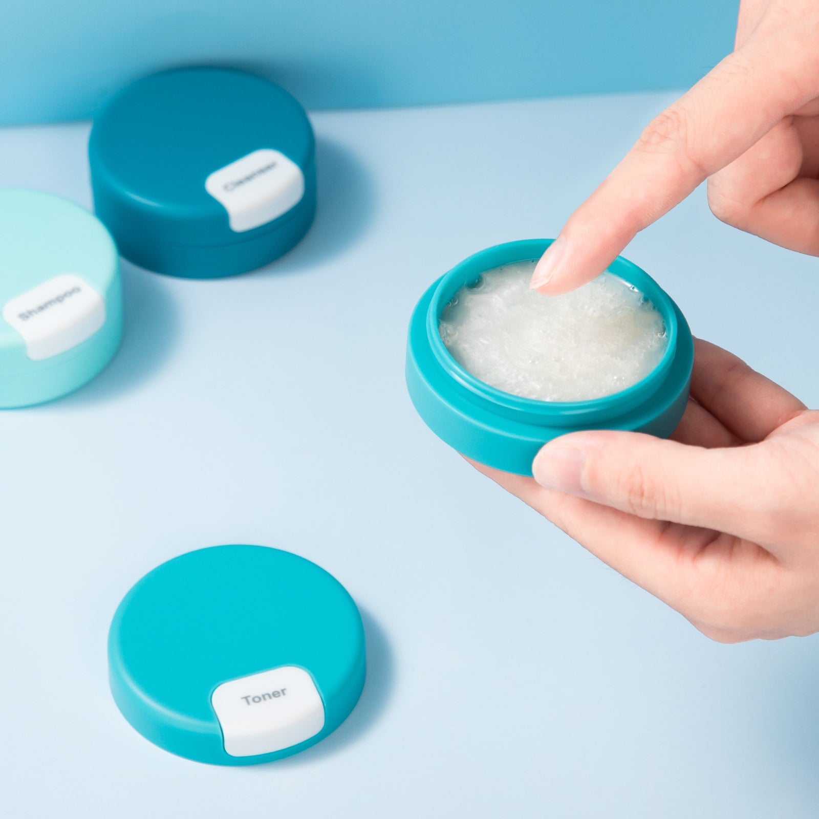 Magnetic Design: Our travel size containers feature a magnetic design that connects each container vertically. They include magnetic labels that seamlessly swap between all of Capsules.
