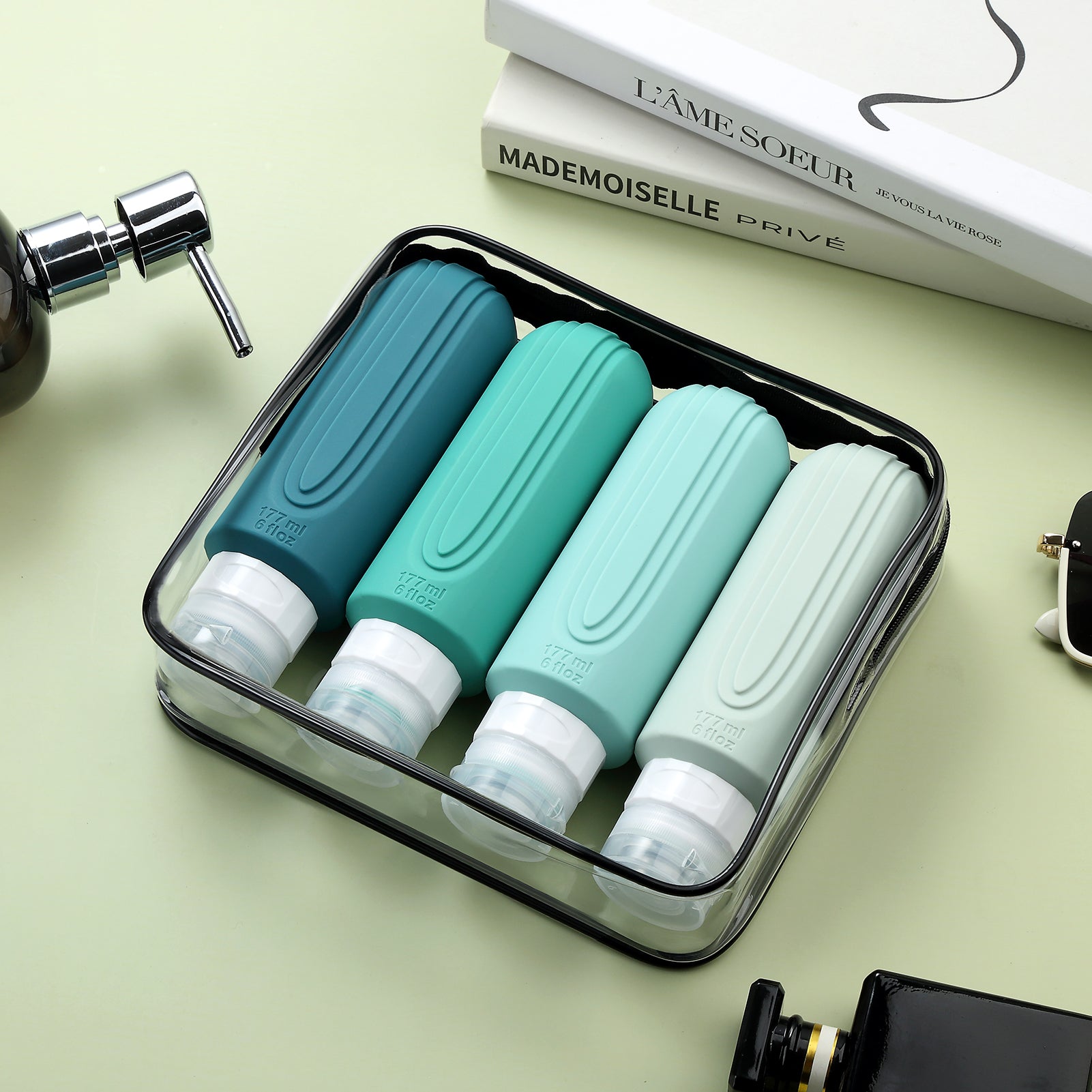 Mrsdry Travel Bottles for Toiletries, Large 6oz Oversize Containers, BPA Free Leak Proof Tubs Refillable Liquid Travel Accessories with Toiletry Bag for Cometic Shampoo and Lotion Soap (4 Pack)